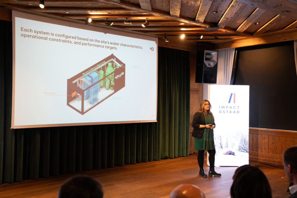 Le Green Business Award a été décerné pour la septième fois déjà. Lors de la finale à Impact Gstaad, Oxyle s’est imposée face à deux entreprises: Voltiris, qui utilise des modules solaires pour les serres sans perte de récolte, et Everllence, dont la grande pompe à chaleur alimente des villes entières en chauffage urbain climatiquement neutre.